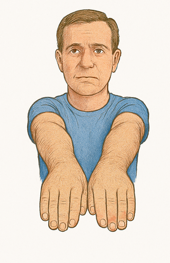 Pyydä autettavaa nostamaan kätensä suoraksi eteen. Nousevatko molemmat kädet vaakatasoon? Entä pysyvätkö ne suorina?